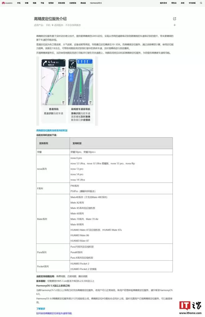 IT之家从华为官方获悉,目前HarmonyOS 5.0及以上系统已支持高精度定位服务,老用户可以继续正常使用。新用户若想体验该服务,则需要将系统升级至HarmonyOS 6.0。