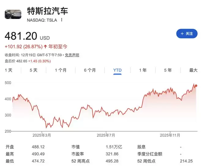 马斯克的财富主要来自其持有的特斯拉股份和SpaceX股权,特斯拉股价今年以来的强劲表现是其净资产快速增长的主要驱动力。