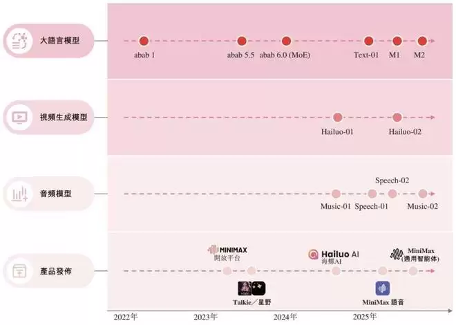 MiniMax 是少数自成立起即专注于全模态模型研发的大模型公司之一。自成立以来,MiniMax 的技术迭代密集,接连在语音、视频与文本等模型取得突破性进展,经常得到科技业内的关注。