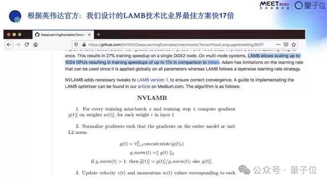 这从英伟达最新GitHub上可以查到,英伟达专家曾经使用过LAMB取得17倍的加速