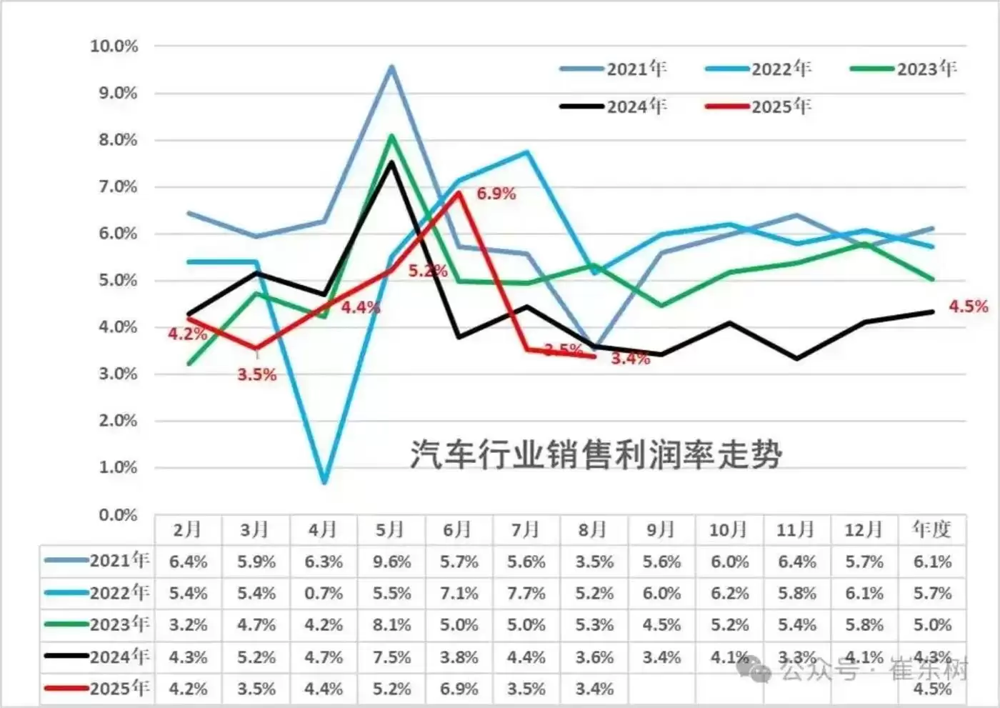 乘联分会数据显示,2024年汽车行业利润率为6.1%,2024年降至5.7%,2024年进一步下探至5%,2024年汽车行业销售利润率仅为4.3%,较历史正常水平大幅下降。到了今年,1—8月汽车行业利润总额为3035亿元,同比下降0.3%,行业利润率为4.5%。相对于下游工业企业利润率6%的平均水平,汽车行业利润率仍属于偏低水平。