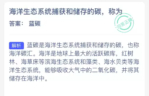 支付宝神奇海洋课堂:海洋碳汇的捕存与碳储量计算答案