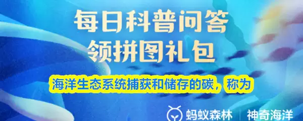 海洋生态系统所捕获和储存的碳,通常被称为什么?【神奇海洋】12月21日的新题目已经揭晓!正确答案现已公布,点击即可领取拼图,一起为修复海洋生态贡献一份力量吧!今日的正确答案是:【蓝碳】。海洋生态系统捕获和储存的碳,就被称为蓝碳。