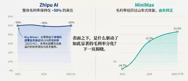 毛利率是衡量AI公司技术溢价能力的核心指标。在此次披露中,MiniMax在API业务上的表现令市场意外,而智谱AI在云端业务上则显露疲态。