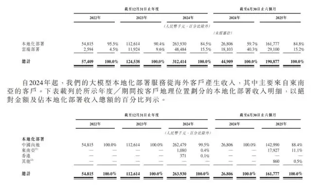 截至2025年6月30日,其本地化部署(私有化部署)收入达到1.62亿元人民币,占总收入比例高达84.8%