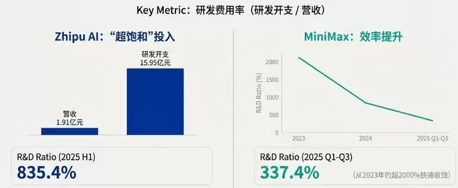 大模型行业仍是“吞金兽”。两家公司的研发投入强度均处于高位,但智谱AI的投入显得更为激进。
