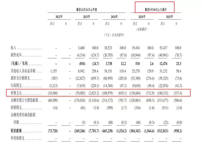MiniMax虽然也在烧钱,但得益于营收的快速拉升,其研发费用率正在快速收敛。2024年其研发费用率曾超过2000%,但到了2025年前9个月,已降至337.4%(研发支出1.8亿美元 vs 营收0.53亿美元)。这表明随着C端产品的放量,MiniMax正在逐步摊薄巨额的研发成本,经营杠杆效应开始显现。