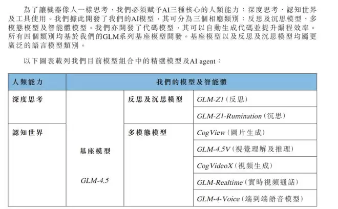 智谱AI:强调学术底蕴与GLM框架。源自清华大学知识工程实验室(KEG),智谱AI 早在2020年就启动了 GLM 预训练框架的开发。其技术亮点在于GLM-4.5基座模型及AutoGLM智能体,后者能够模拟人类操作手机和电脑,实现从“对话”到“执行”的跨越。智谱AI 在招股书中多次提及“安全”与“可控”,这与其服务大型企业和公共部门的定位高度契合。