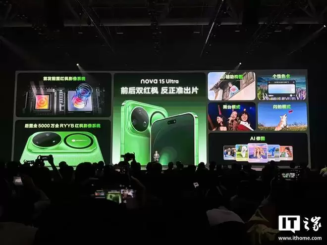 据IT之家早些时候的报道,华为nova 15 Ultra此次首发了全新的双红枫影像系统。该系统拥有超过150万个光谱通道,官方称其能“反正准确出片”。此外,其后置的红枫原色镜头还配备了自适应多焦段双闪光灯以及激光对焦传感器。