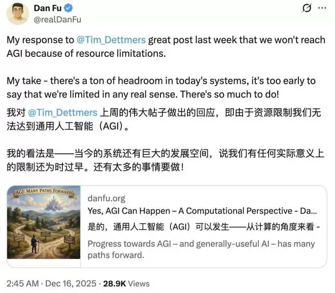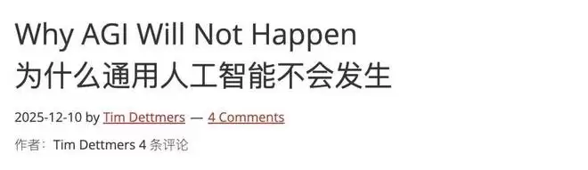 博客链接:https://timdettmers.com/2025/12/10/why-agi-will-not-happen/