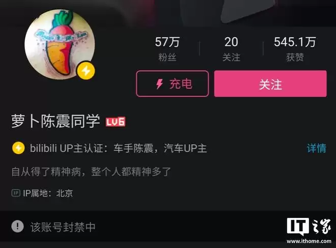 IT之家注意到,汽车博主陈震自12月4日晚起,其多个社交媒体账号陆续被禁言,其中便包括其B站账号 @萝卜陈震同学。