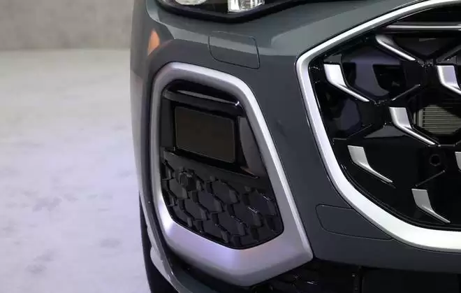 不同于市面上常见的单顶置激光雷达方案,全新 Q5L(高配车型)在前包围两侧导流槽区域集成了两颗隐藏式激光雷达。