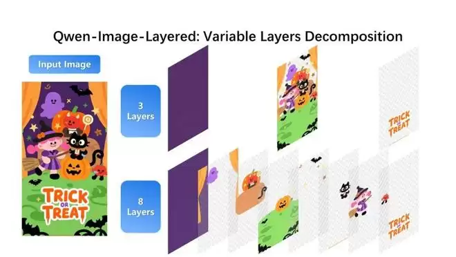 给定一张图像,Qwen-Image-Layered 可将其分解为若干个 RGBA 图层:
