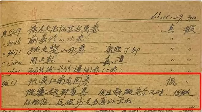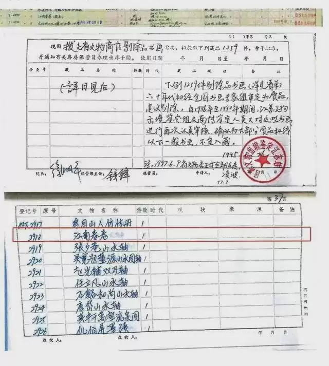 ▲1997年5月8日,被认定为赝品的《江南春》图卷退出南京博物院馆藏记录