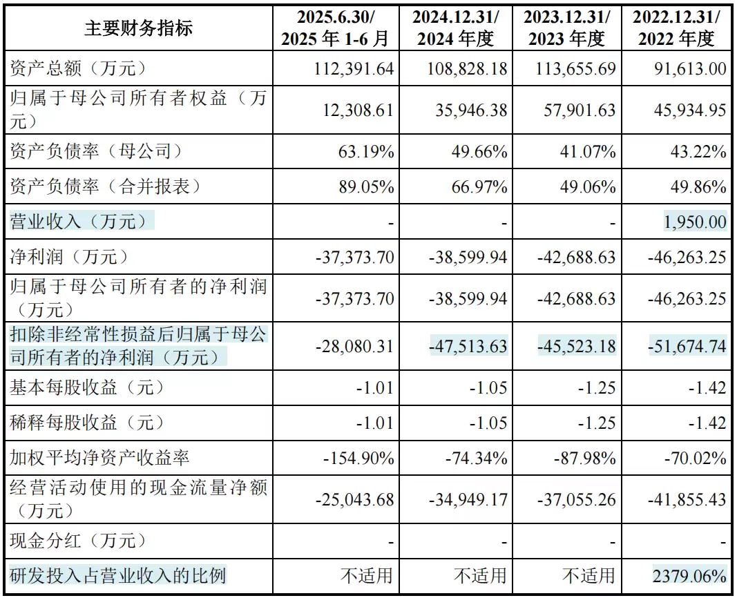 2024年度、2025年1-6月,归属于母公司股东的净利润分别为-46,263.25万元、-37,373.70万元。
