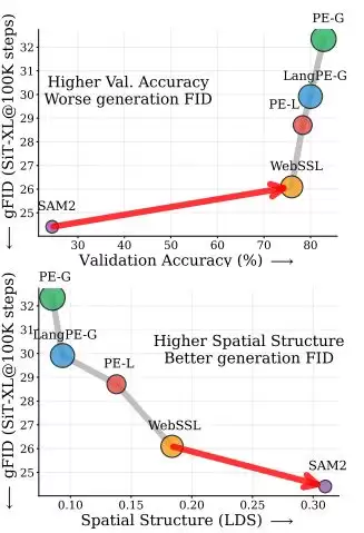 但当这些编码器被用于REPA时,SAM2的生成质量反而优于一批准确率高出约60%的模型。