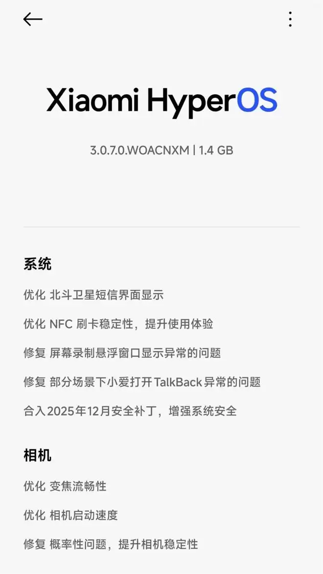 从这些修复内容来看,小米对相机功能的稳定性给予了高度重视,毕竟相机作为智能手机的核心功能之一,其稳定性直接影响用户体验。