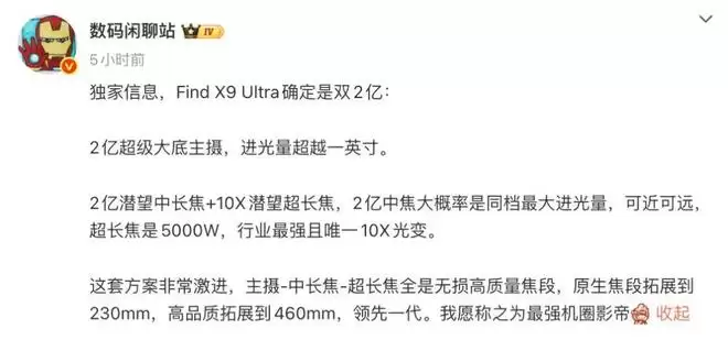 双2亿像素影像!OPPO Find X9 Ultra再曝核心亮点