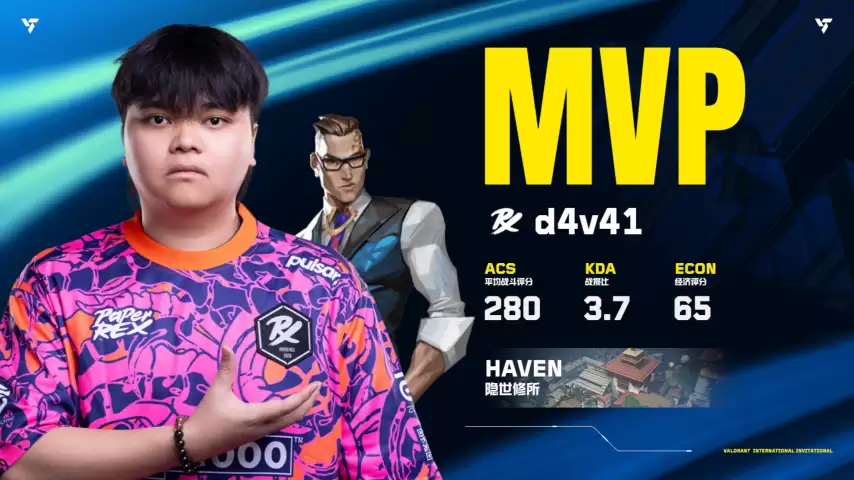 恭喜PRX战队的d4v41选手,荣膺2025无畏契约源能国际邀请赛最有价值玩家MVP!