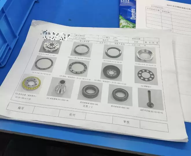 我所应聘的岗位是组装,也就是把零件根据设计图纸拼在一起。工艺流程手册详细列出了注意事项和需要用到的零部件和工具,比如用多少号的螺钉,安装之前要冷冻长时间——利用热胀冷缩原理把工件嵌进去,安装时扭矩要打多少,等等。