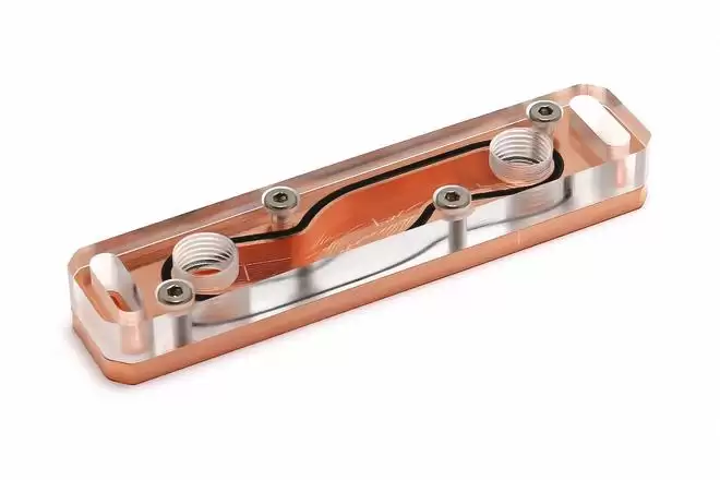 该系列冷头配备两个G1/4"螺纹进出水口,不仅拥有出色的冷却性能和耐用性,还避免了因悬浮物积聚导致的堵塞风险,至少两年内无需维护。其在较高流量下能保持低流阻特性,即便在低流量工况下,散热表现同样出色。