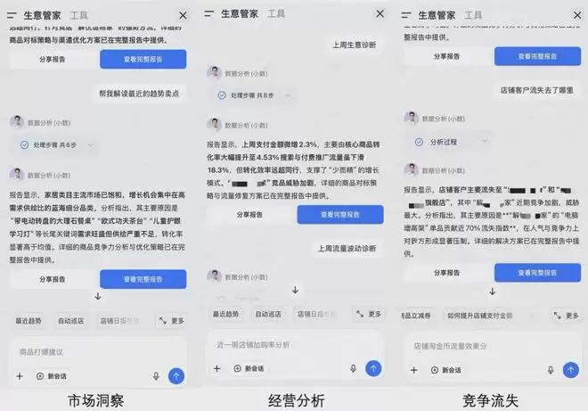 生意管家的深层目标,绝非仅仅「提供 AI 工具」,而是让 AI 成为商家日常经营的一部分,从数据诊断到策略执行的全链路,使之从「辅助操作」跃升为「决策共创伙伴」。如今,商家的实践已清晰验证,AI 的价值远不止于降本增效,更在于帮助商家发现隐藏的增长机会,系统性突破发展瓶颈。