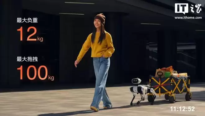 “大头 BoBo”的最高速度可达 13.3km/h,最大负重可达 12kg,最大拖拽可达 100kg,最新演示了拖拽露营车的场景。