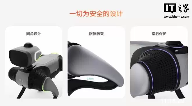 “大头 BoBo”还采用了圆角设计防止磕碰到人,腿部配有限位防止夹手,接触部分进行了保护设计。