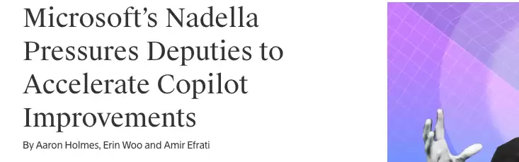 报道称,令纳德拉感到担忧的是,微软在其人工智能助手Copilot方面所付出的努力未能达到预期效果。作为微软在AI领域的重要布局,Copilot承载着提升用户体验、增强产品竞争力的重任。然而,现实情况却显得不尽如人意。