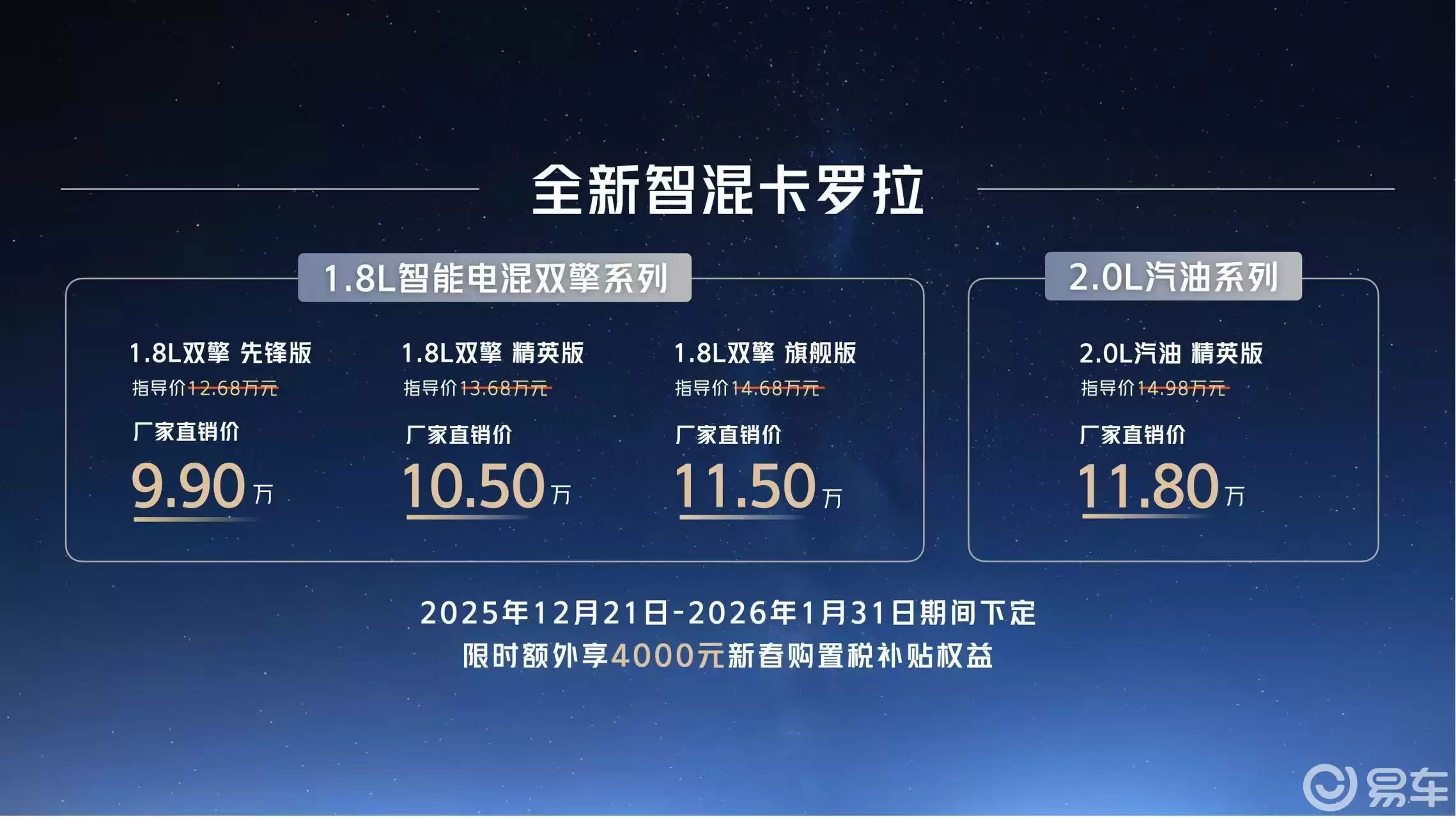 全新智混卡罗拉9.9万起,品质出行新旅程正式开启