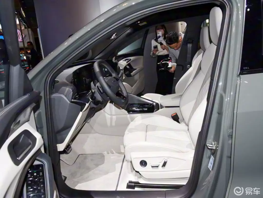 内饰方面,全新奥迪Q5L提供了黑色、黑色/米色、黑色/棕色和黑色/赤陶红色四种配色方案,满足不同消费者的个性化需求。车内配备了四块屏幕,包括11.9英寸液晶仪表屏、14.5英寸中控屏、10.9英寸副驾屏以及13.1英寸浮影W-HUD抬头显示系统,可与手机实现五屏联动,并支持CarPlay手机互联功能。新车还配备了前排手机无线充电面板,提升了日常使用的便利性。