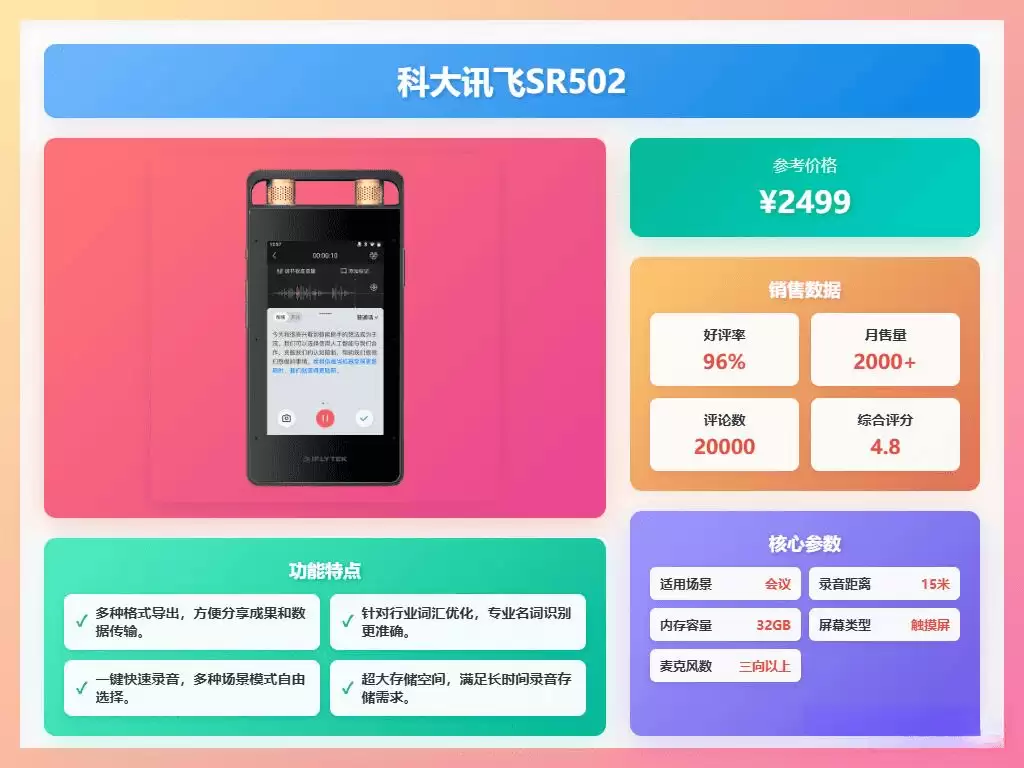 市场反馈显示,科大讯飞智能录音笔正在重塑专业录音设备标准。其将AI语音技术、硬件设计与用户需求深度融合的研发思路,为行业树立了新的标杆。随着远程办公与跨语言协作需求的增长,这类具备高精度录音与智能转写功能的设备,正成为现代职场人士的标准配置工具。