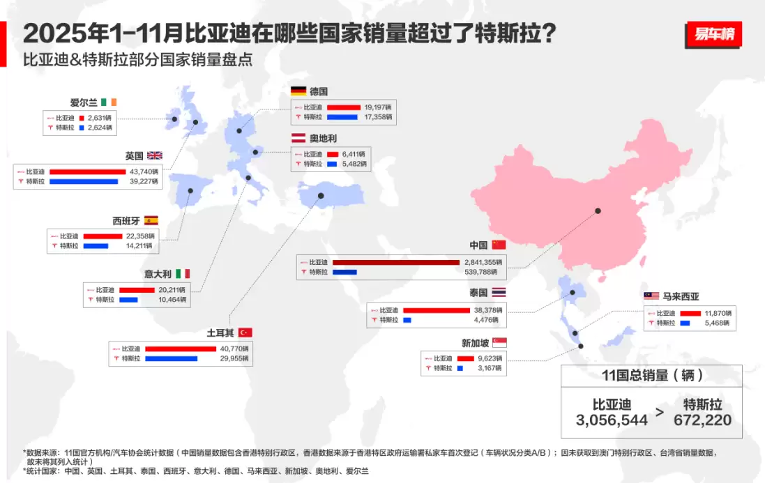 比亚迪11月出口激增313%,多国市场销量领先全球