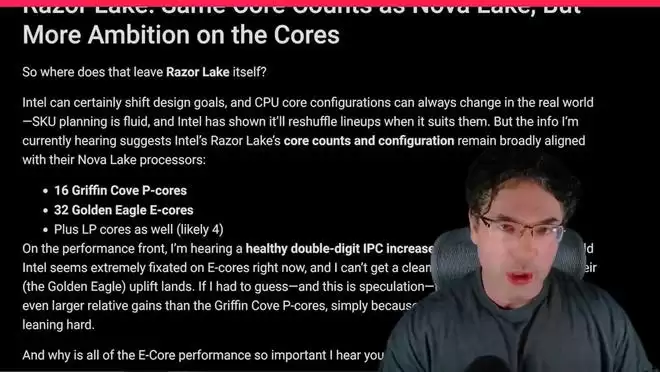 英特尔 Razor Lake 桌面 CPU 架构