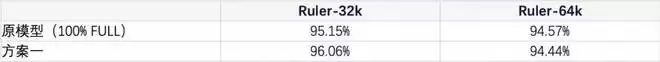 表 2:方案一不经过训练,在 Ruler 上无损