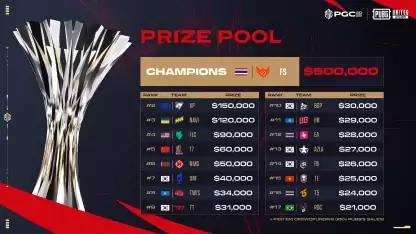 北斗所指,竞逐巅峰!11月28日 -12月14日,PUBG全球总决赛2025(以下简称PGC 2025)在泰国曼谷暹罗百丽宫已完美拉下帷幕,来自世界各地的33支劲旅经过3周的激烈争夺,最终来自泰国的FULL SENSE战队(FS)以155的总积分,拿下了本次PGC2025的总冠军,独享50万美元的奖金。同时,FULL SENSE战队的Belmoth选手还拿到了比赛的MVP。PGC2025亚军和季军则分别由Virtuspro和Natus Vincere斩获,奖金为15万美元跟12万美元。本次出征PGC2025的PCL赛区战队共有6支:A组的4AM、17、JDG,B组的PeRo、CTG、GSW,最终17战队以113的总积分位列总榜第5。