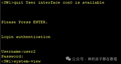 配置完成后,我们先退出当前会话,然后尝试重新登录,以验证AAA认证是否生效。