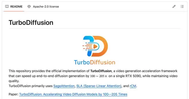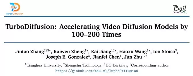 清华大学TSAIL实验室携手生数科技,重磅发布并开源了视频生成加速框架TurboDiffusion。