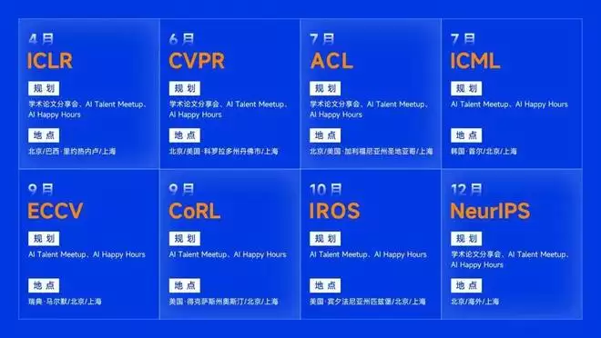 旧章已谱,新篇待书。2025年的圆满收官,正是2026年更精彩旅程的起点。我们已初步规划了覆盖ICLR、CVPR、ACL、ICML、ECCV、CoRL、IROS、NeurIPS等顶会的全新系列蓝图。除延续“论文分享会”与“人才Meetup”,更新设了“AI顶会Happy Hours”系列活动,期待从北京辐射全球更多城市。