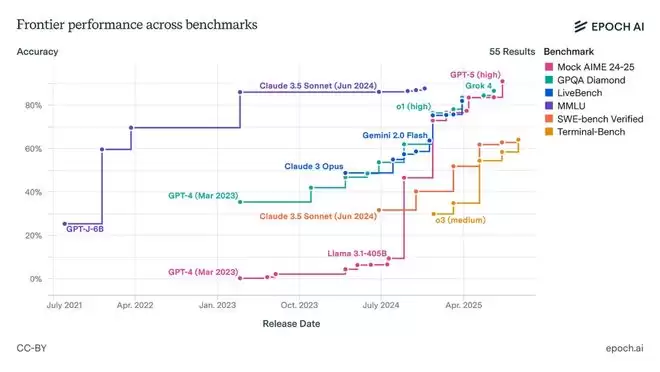 同时,测试发现AI进步极快:较新的模型得分远超旧模型。