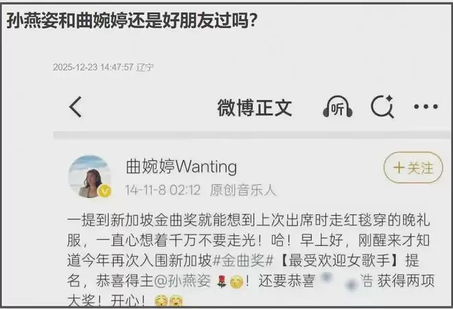 至于原因,是突然有爆料称,孙燕姿要和曲婉婷合作了。