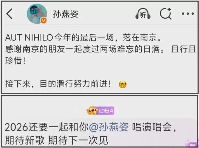 相关动态评论区还在喊话孙燕姿,希望她继续巡演,想2026年在自己的城市看到孙燕姿演唱会。