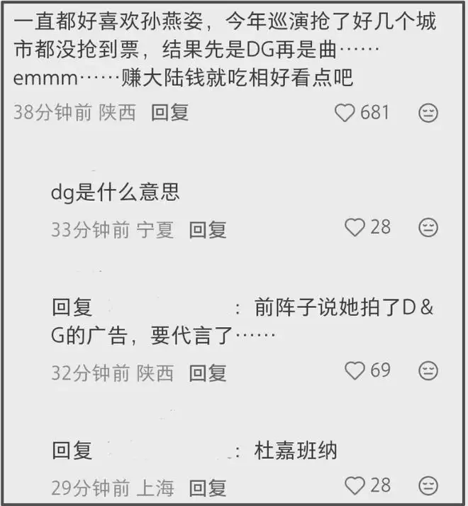2025年,孙燕姿和杜嘉班纳合作的消息传出,其实也遭到了抵制,虽然有物料流出,但是后续双方都没有进一步官宣了,可见孙燕姿和她的团队还是能注意到舆论了。