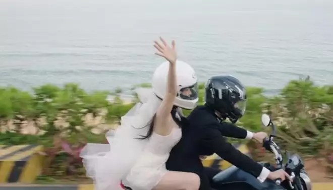 最让人印象深刻的终极场景“机车私奔婚礼”,两人彻底抛开传统仪式的束缚,靳朝骑着机车,载着穿洁白婚纱的姜暮沿着海岸线一路疾驰,像是在宣告他们冲破了所有世俗阻碍,但是却改变不了立意小家子气的事实。
