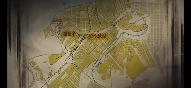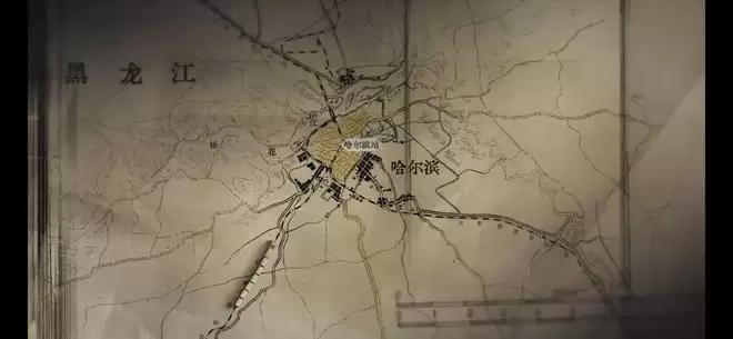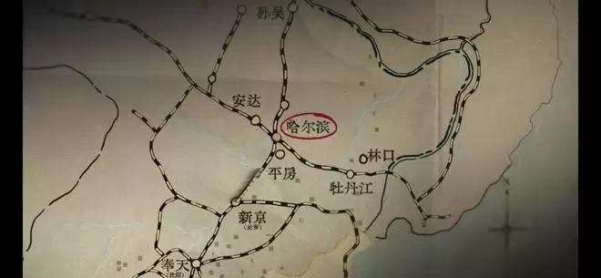 局部的铁路地图,画面放大,“哈尔滨”被红圈重点圈出。预告整体故事发生的背景城市,就是黑龙江的省会——哈尔滨。