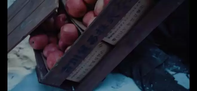 一个日本老板把一个“坏了的苹果”,“赏赐”给了佟长富,佟长富咬掉坏的部分,把苹果拿给二条吃,二条不吃,佟长富才自己吃。