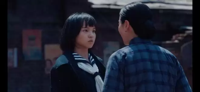 佟玉兰大衣外套里是日本学生服,又被日本控制的警察厅追捕,暗示佟玉兰是“反动派”的一员。