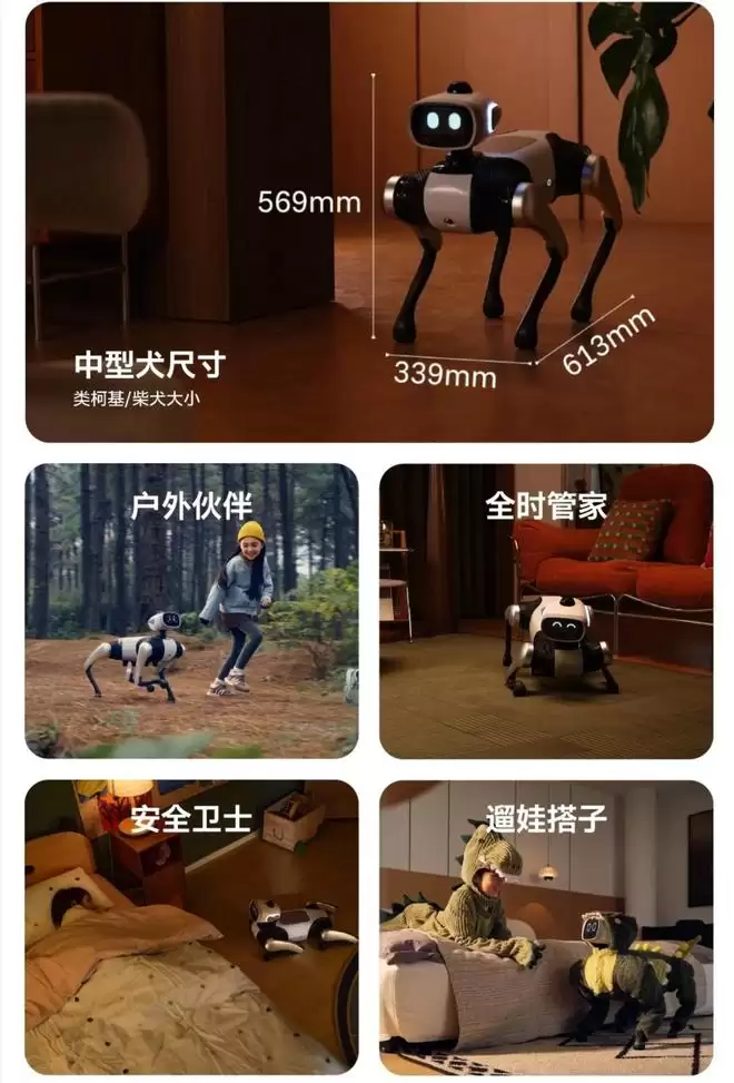 Vbot超能机器狗定位“家庭生活伙伴,以12988元定价、9988元创始权益价切入消费市场,凭借“本体智能+空间智能+Agent智能”三层架构,可实现自主随行、载物、跟拍等全场景能力。值得注意的是,该产品宣称实现了“无需遥控”的自主行动能力,这在全球消费级机器狗领域尚属首次。