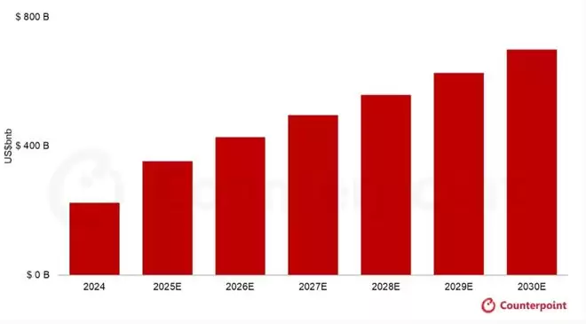 市场研究机构Counterpoint发布的数据显示,生成式人工智能在全球消费者市场预计将持续增长,其市场规模到2030年可能达到约7000亿美元。