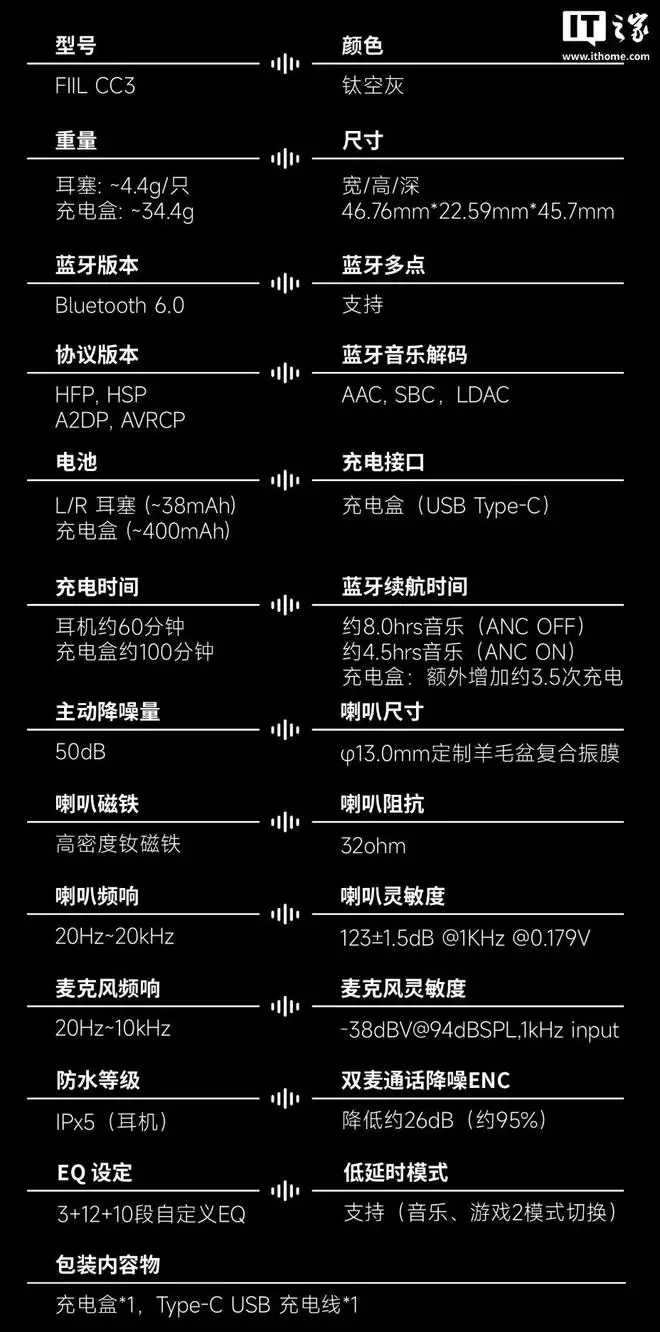 IT之家为大家整理了这款耳机的详细参数: